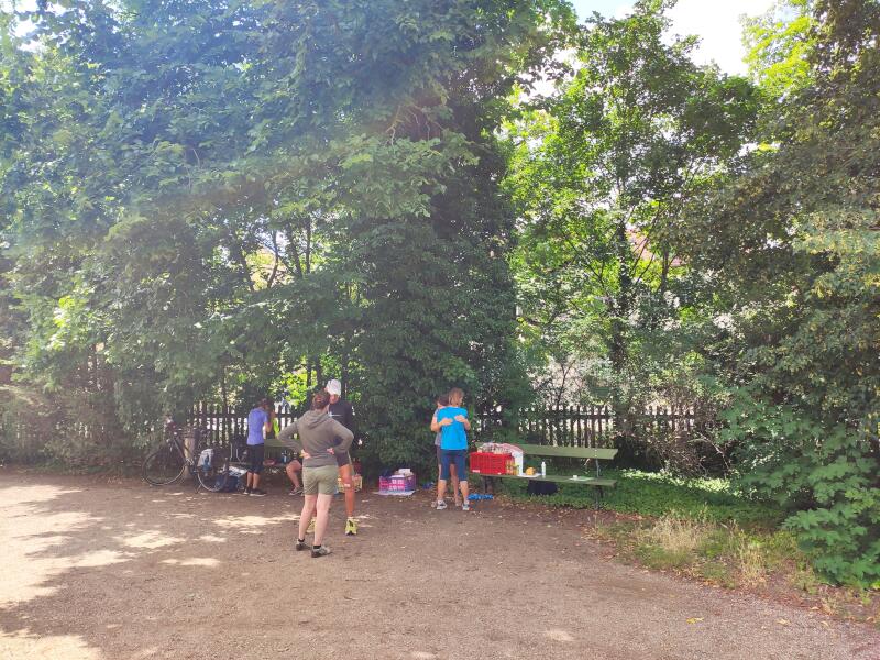 Schnell wird eine Flasche Iso weggeext und mit einer weiteren Flasche ausgerüstet geht es auf die zweite Runde. Aufgrund der Temperaturen von um die 25 Grad, wurden sogar zwei Verpflegungspunkte eingerichtet. Ein "unbemannter" bei Kilometer acht und Einer bei Kilometer 14, am Beginn des Kanals, der von Mikes Enkeln nett betreut wurde.