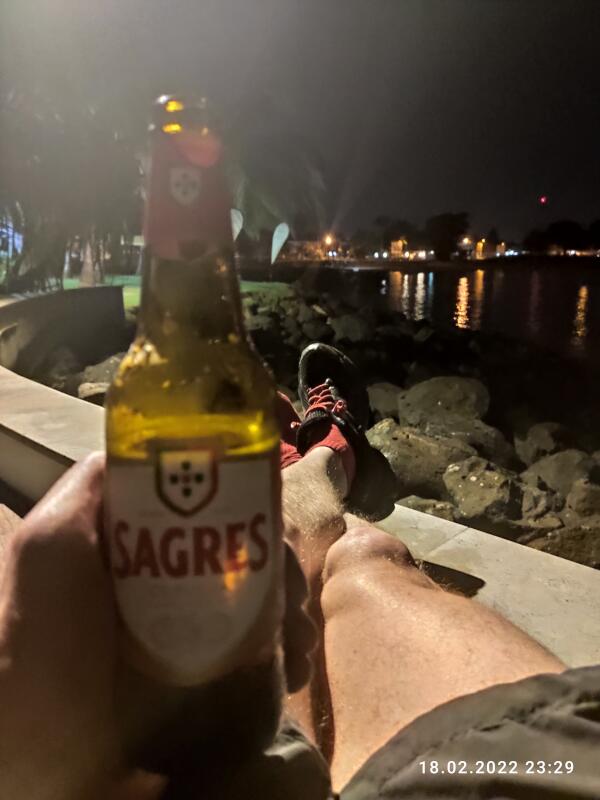 | Sa., 26.02.22 | Noch einmal im Atlantik baden gehen, bevor es, nach einem ausgedehnten Frühstück, um 11:30 Uhr mit einem Kleinbus, in ca. 2,5 Std Fahrzeit, zurück nach São Tomé City geht. Auf halber Strecke nochmal ein längerer Halt an einen Restaurant zum Lunch. In São Tomé City noch ein Stopp an einer Schokoladenfabrik mit Café zum Herumhängen vor dem Abflug. Vor dem Abflug um 20:20 Uhr, kann man noch in aller Ruhe das Spiel Frankfurt-Bayern im Kicker Liveticker verfolgen (0:1). Dann in 1,5 Std nach Accra und nach 45 Minuten Aufenthalt, weiter nach Lissabon.