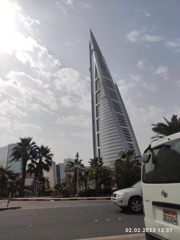 Gegen 8:00 Uhr fahre ich von Fujairah, eines der sieben Emirate der Vereinigten Arabischen Emirate, zurück zum Airport nach Dubai und gebe meine fette Karre zurück. Vorher wird nochmal getankt. Knapp 70 Cent der Liter. Das ist gut. Um 13:00 Uhr, Abflug nach Bahrein . Ankunft um 13:20 Uhr (-1 Std.). Weiter mit dem Bus nach Manamah und dann noch eine halbe Stunde Latscherei ins Hotel im Stadtteil Hoora.